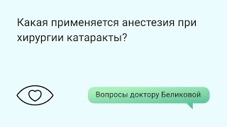 АНЕСТЕЗИЯ В ОФТАЛЬМОЛОГИИ: КАТАРАКТА
